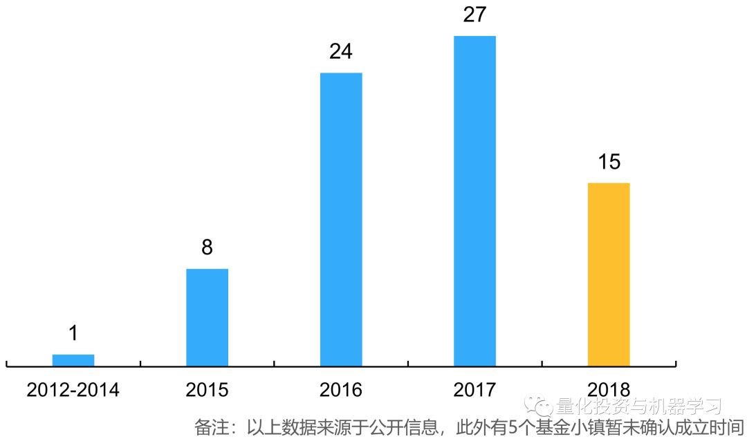 2012-2018年中国历年新设基金小镇数量变化趋势