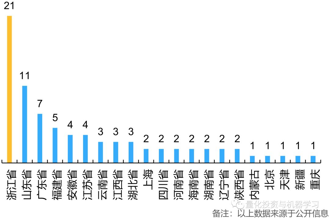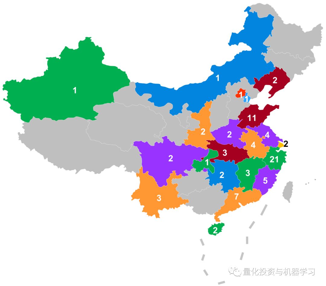 华东、华北、华南前三,说明量化投资还是在沿海城市比较集中。从另一个角度来说,这也和当地教学有着密切关系。华东、华北、华南这些区域在量化投资、金融科技的整体教学水平,要比中西部地区更加开放和前沿。从每个院校的专业设置、学科规划、校企合作等方面都能感受到这一点。想必很多读者也深有体会吧,我们就不展开讲啦~
