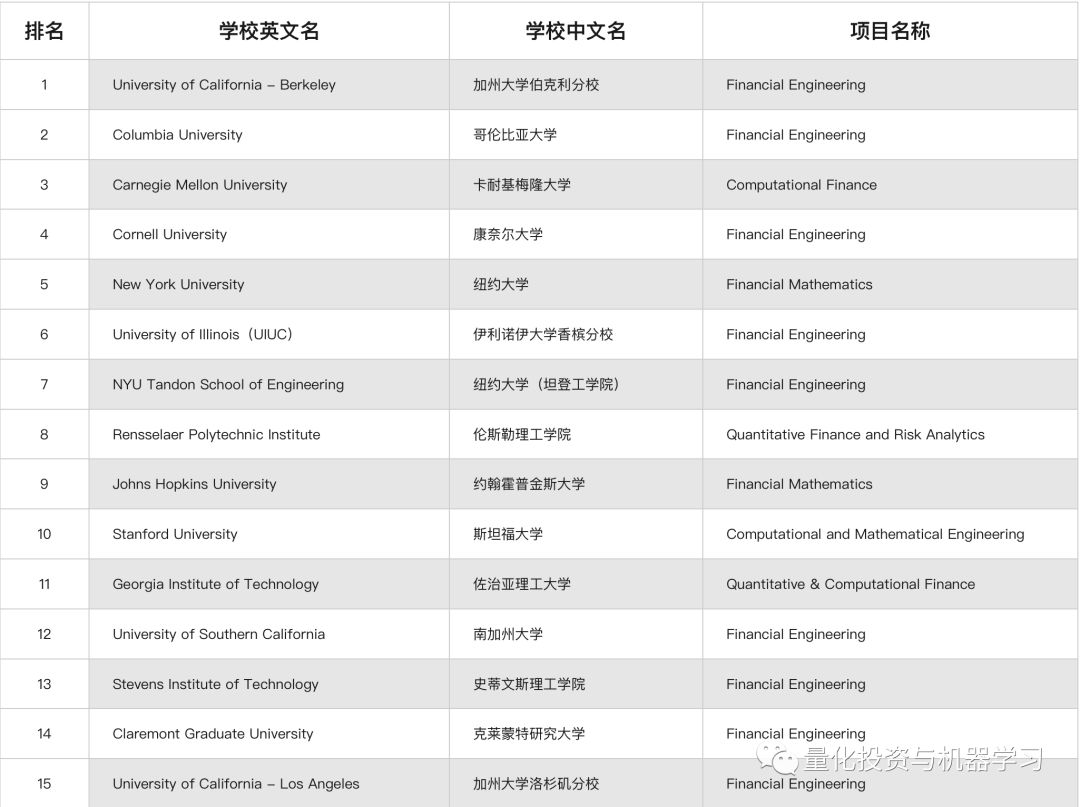 我们通常把金融工程硕士(Master of Financial Engineering)简称MFE。不同学校对这个专业设置不一样,有的叫Financial Mathematics、Quantitative/Mathematical Finance等,这些专业本质上都算是一类。