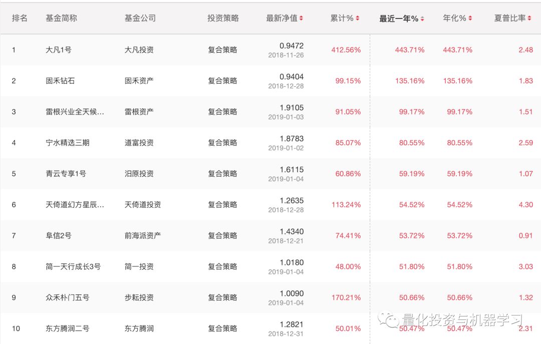 最新复合策略最近一年前10名(2019/1/8统计数据)
