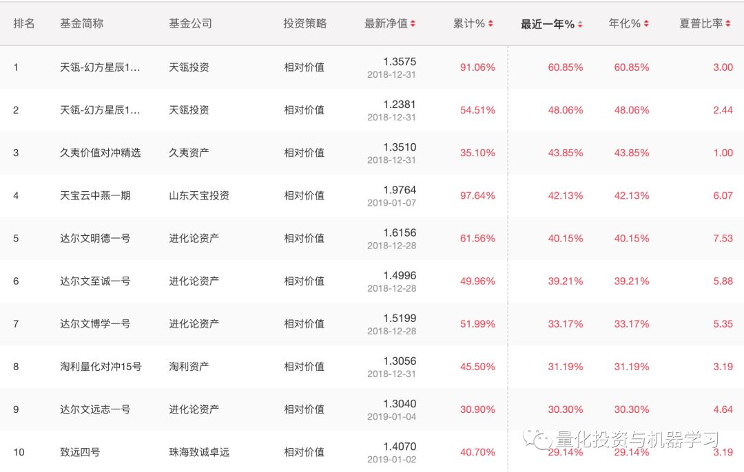 最新相对价值最近一年前10名(2019/1/8统计数据)
