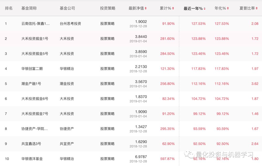 最新股票策略最近一年前10名(2019/1/8统计数据)
