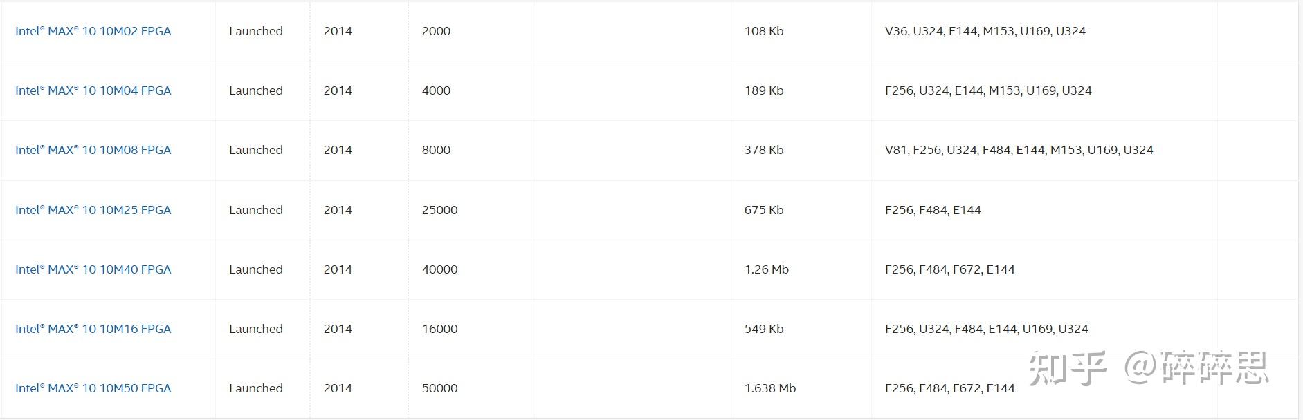 从上面可以简单分两个系列Agilex系列是收购Altera后推出的系列FPGA,其他系列基本都是Altera没被收购时的系列FPGA。这样区分其实没太大意义,只是想说的是。。。从Agilex系列之后Altera基本从国内消失了。