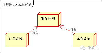 库存系统:订阅下单的消息,采用拉/推的方式,获取下单信息,库存系统根据下单信息,进行库存操作。