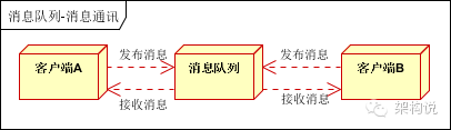 客户端A和客户端B使用同一队列,进行消息通讯。