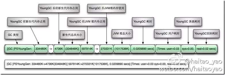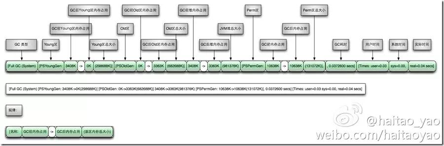 摘录GC日志一部分(前部分为年轻代gc回收;后部分为full gc回收):