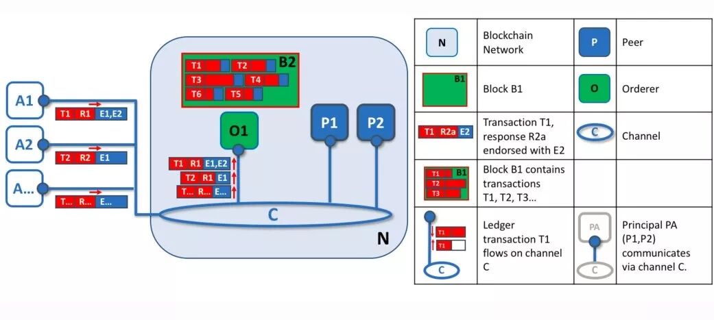 所以,为了解决数据的访问控制与隐私保护问题,Fabric提出了一种称为 channel 的体系结构,只有参加 channel 的 nodes 有权访问 smart contract(Fabric 称为 chaincode)和数据。(在我印象中,76年现代密码学的开山之作就是说怎么干这事,说是 Fabric 提出的,不太合适,但 Fabric 确实是用这种方法在网络中隔离出一个个的联盟)。