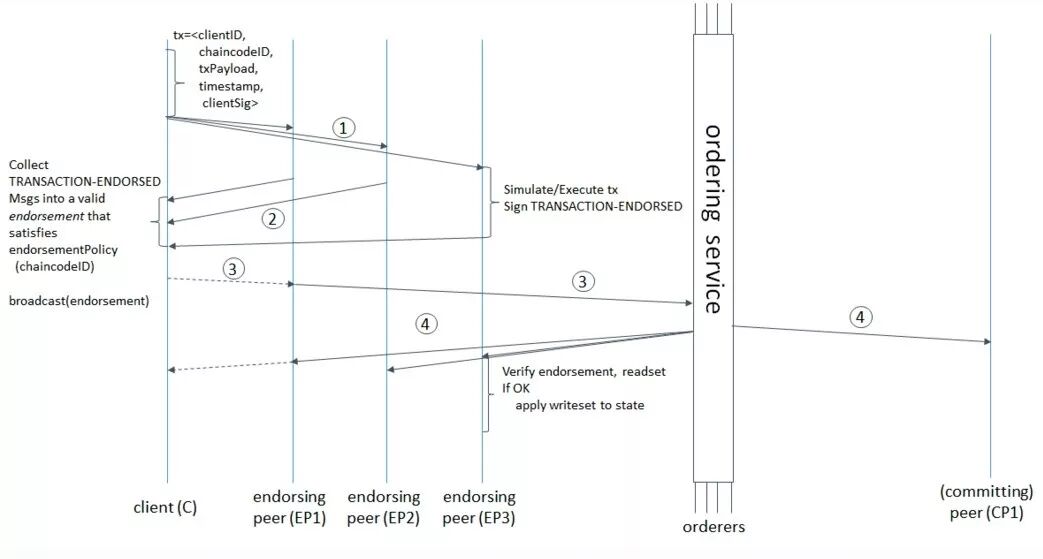 endorsing peer 主要是给 client 背书的。它的功能是验证,然后再签名,有些 endorsing peer 可能不在线,有些可能不理 client。client 在收集到足够的(达到背书策略要求的)背书 endorsing peer 后,把 transaction 发给 orderer。orderer 再把 transaction 发给具体执行智能合约的 committing peers。这里 Fabric 说得不够细致,orderer 在这样的通信流程中是很重要的,如何保证 orderer 在处理这些来自不同节点的信息的时序性呢。Fabric 没说清楚,我们只能假设它做到了。但这是隐患,在分布式系统中保持全局时序一致性并不容易。
