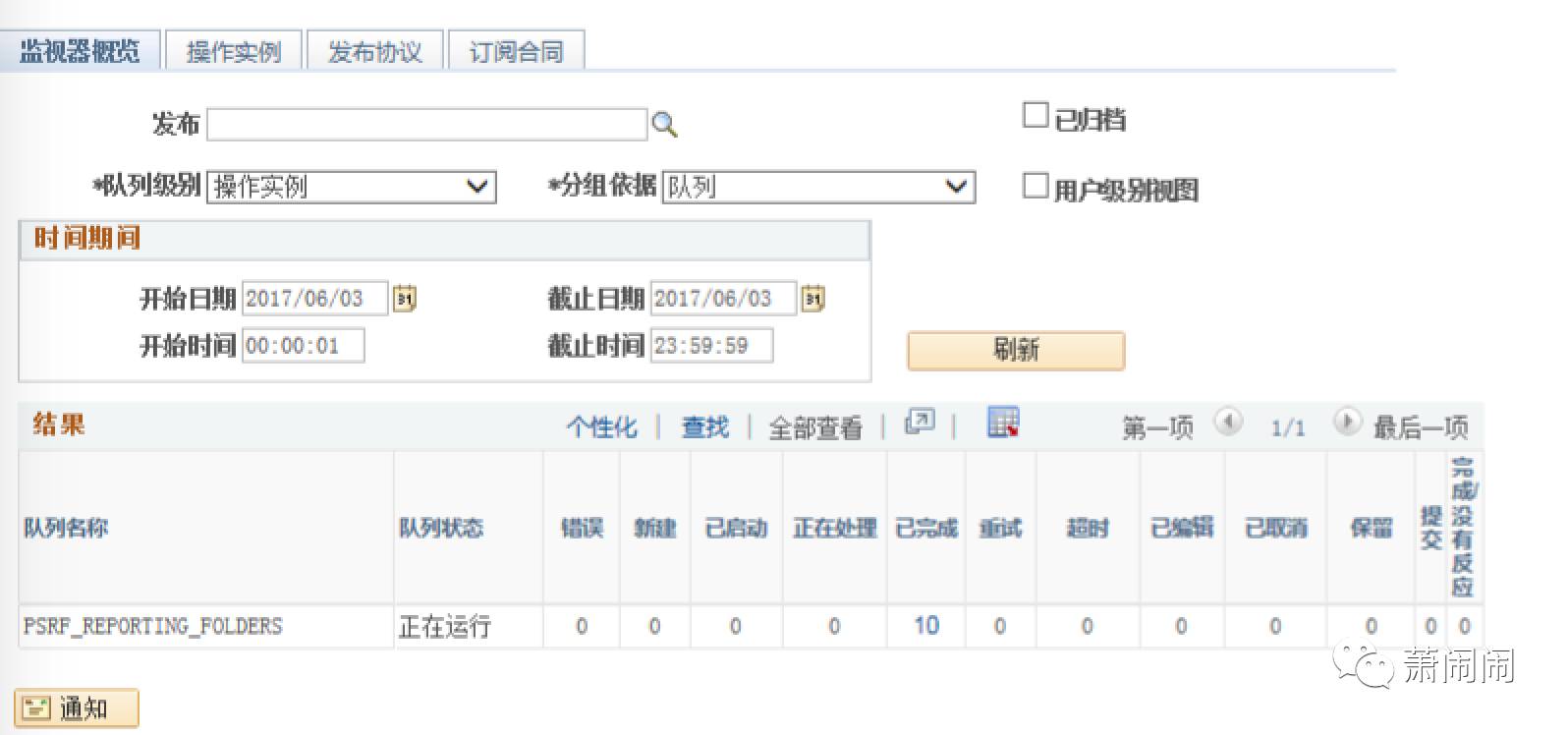 1、在主菜单>PeopleTools>集成代理程序>集成设置>队列需要添加一个队列,状态设置为运行
