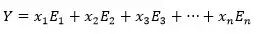 数学家告诉我们任意一个点X到直线Y上的投影与原点的距离,就是X与E的内积。哇,这么简单!这个懒偷得有创意,有水平。不过你以为求一个直线上的投影就完了么?数学家们可不这么想。他们又进一步告诉我们,对于一个过原点的平面,只要在上面选取两个不共线的向量进行线性组合,就可以表示这个平面。简化一下的话,也是选两个与原点为距离为1的单位向量,同时这两个向量是相互垂直的,他们还给了这样的单位向量一个名字,叫“基”(没错,搞“基”是线性代数里的一项重要工作)。则平面可以表示为: