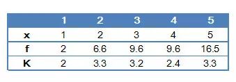 实验一定有误差,每组数据算出的K都不一样也很符合逻辑。小明把这5个K算了一个平均值2.84,打算交给物理老师去。但是和小明同组的小红却用了另一个计算方法:她把五组实验的以x为横坐标,f为纵坐标在网格纸上画了五个点,然后很小心地画了一根直线,看上去离每个点都很近。她计算了这根直线的斜率:2.95。最后物理老师表扬了小红,因为这根弹簧的弹性系数是3。