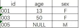 full outer join: 全连接,包含两个表的连接结果,如果左表缺失或者右表缺失的数据会填充NULL。