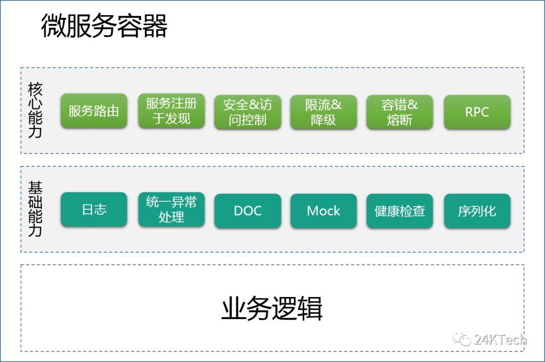 我们要做稳定、高效、易扩展的微服务应用,实际上我们需要做的事情还是非常多的。如果没有一个统一的微服务容器,这些能力在每个微服务组件中都需要建设一遍,也很难集成到一起。有了统一的微服务运行容器和一些公共的基础服务,前面所提到的微服务架构下部分组件重复建设的问题也迎刃而解。