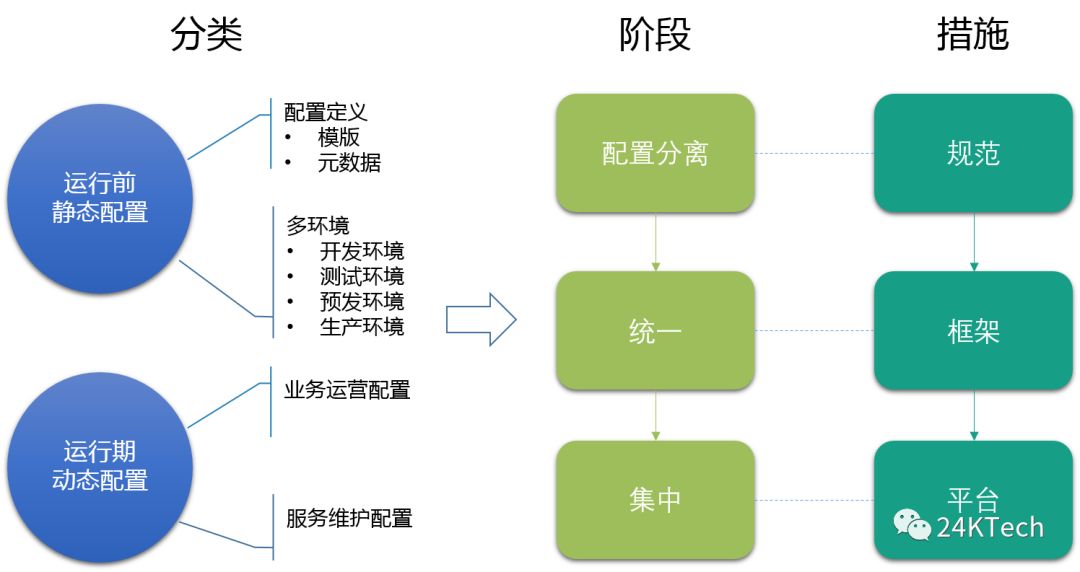 配置的方式要统一,格式、读写方式、变更热更新的模式尽量统一,要采用统一的配置框架。