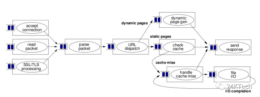 SEDA : staged event-driven architecture本质上就是采用分布式事件驱动的模式,用异步模拟来同步,无阻塞等待,再加上资源分配隔离结起来的一个解决方案。