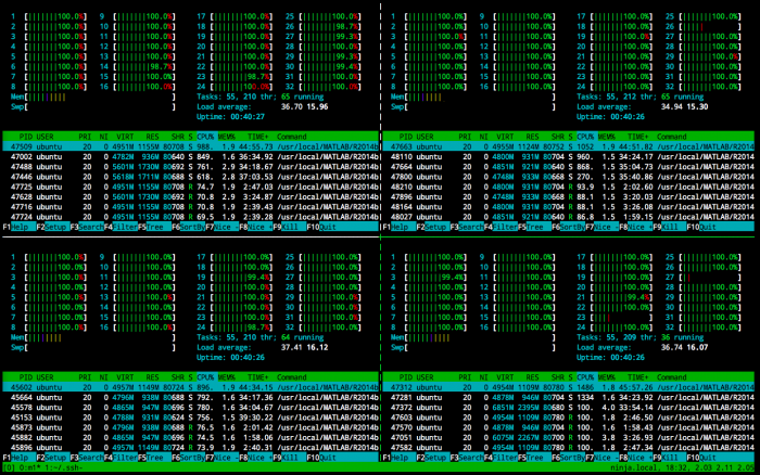 这个的意思是在名字是m1, m2, m3和m4的4台机器上并行处理,每个机器跑32个进程。这样parallel就会自动监视每个机器的运行情况,谁家CPU负载低了就自动分配给它其他任务,保证吞吐量。(当然parallel还没有智能到自动传输数据的程度,但这个可以用NFS等轻松解决)