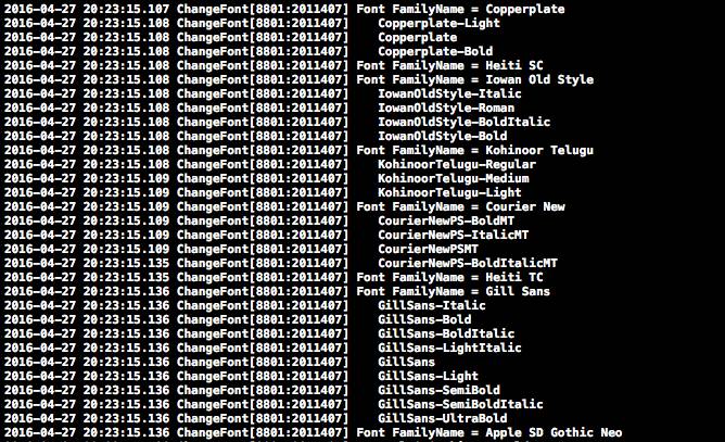 // NSLog(@"Font FamilyName = %@",familyName); //输出字体族科名字