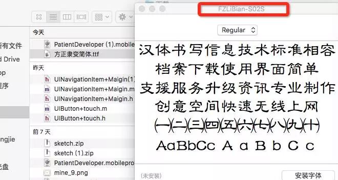 我们在 Finder 里面找到这个ttf,双击打开(在Xcode里面双击打开没效果),这时候系统就会用苹果自带的字体册打开,如下