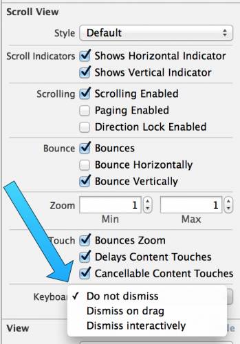 typedef NS_ENUM(NSInteger, UIScrollViewKeyboardDismissMode) {