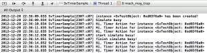 观察结果我们可以发现,当线程空闲的时候timer的消息触发还是比较准确的,但是在36分12秒开始线程一直忙着做大量运算,知道36分14秒该运算才结束,这个时候timer才触发消息,这个线程繁忙的过程超过了一个周期,但是timer并没有连着触发两次消息,而只是触发了一次。等线程忙完以后后面的消息触发的时间仍然都是整数倍与开始我们指定的时间,这也从侧面证明,timer并不会因为触发延迟而导致后面的触发时间发生延迟。