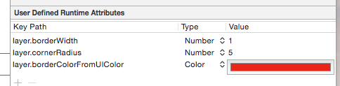 如果要在xib和storyboard里为控件添加圆角和外框宽度,只要这样做就可以: