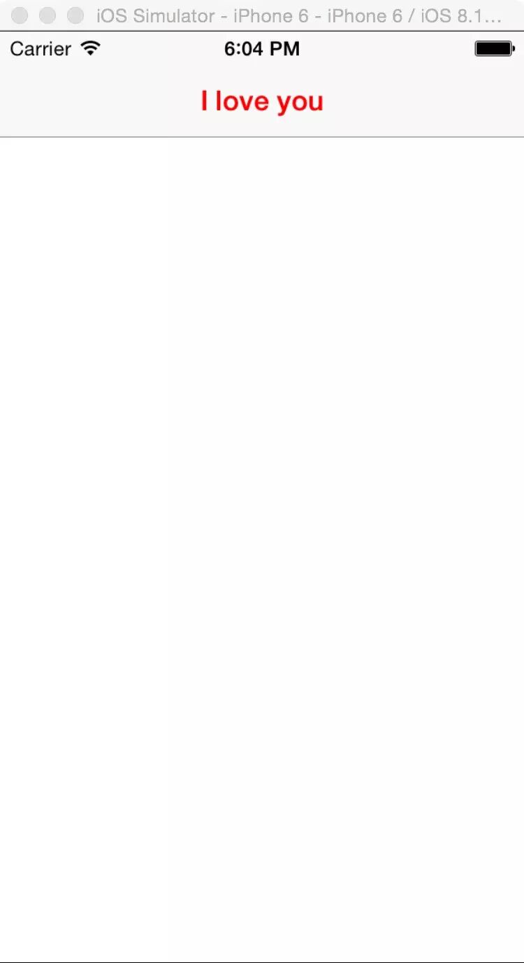 RootViewController.m - (void)viewDidLoad { [super viewDidLoad]; // Do any additional setup after loading the view. self.title=@"I love you"; //改变导航条标题的颜色为红色 [self.navigationController.navigationBar setTitleTextAttributes:@{NSForegroundColorAttributeName : [UIColor redColor]}]; }