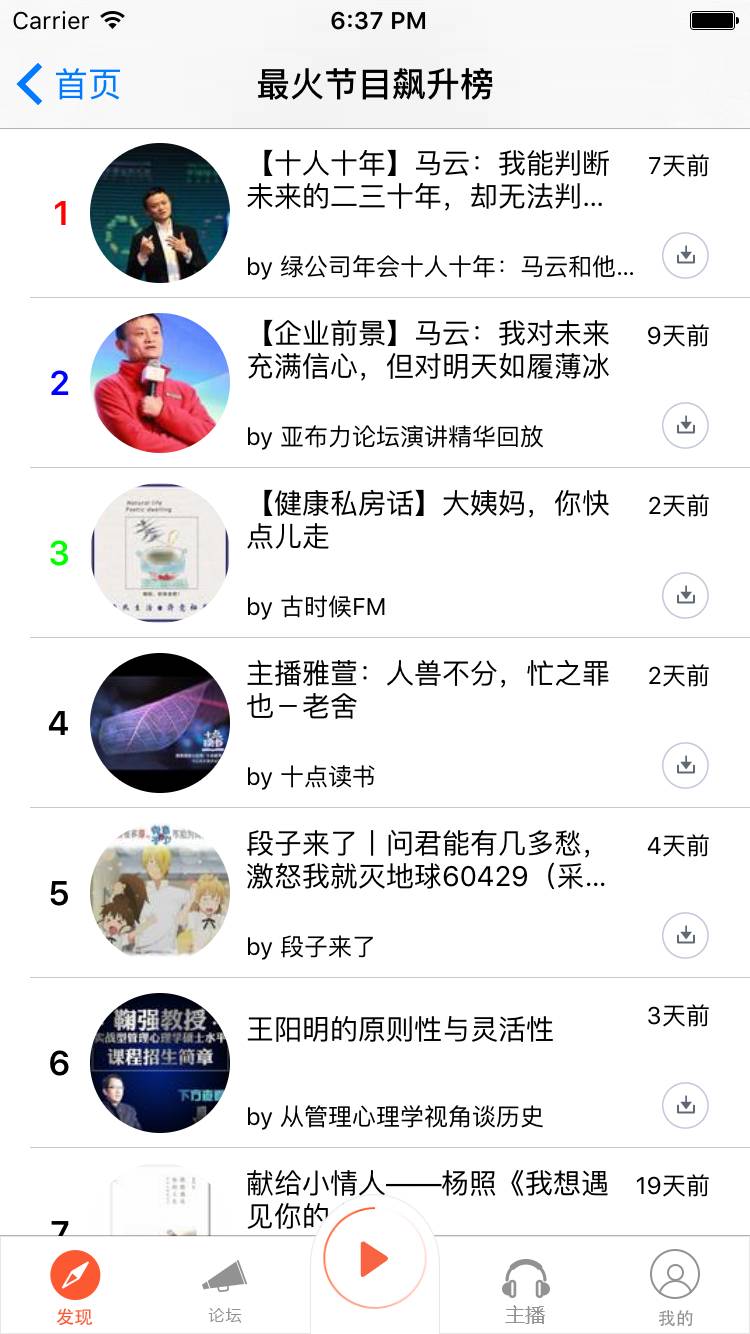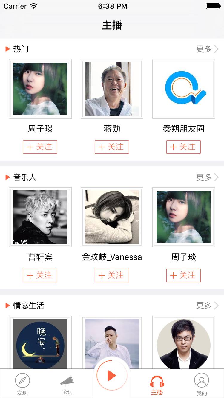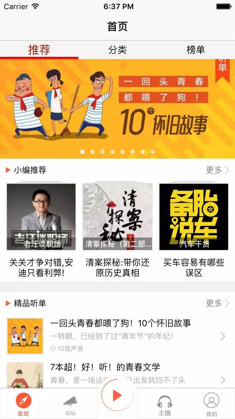 功能没做什么,最主要的是下载的声音和关注的主播这两个功能(都是通过本地plist文件存储信息)。让我印象深刻的是为了做好它我在答辩前一天熬夜把下载后本地存储并本地播放这个功能完善了,但第二天老师竟然没给我展示这个模块,有种受打击的感觉。但想想大学四年能认可你的人太少了,毕竟未来的舞台并不在大学里面。
