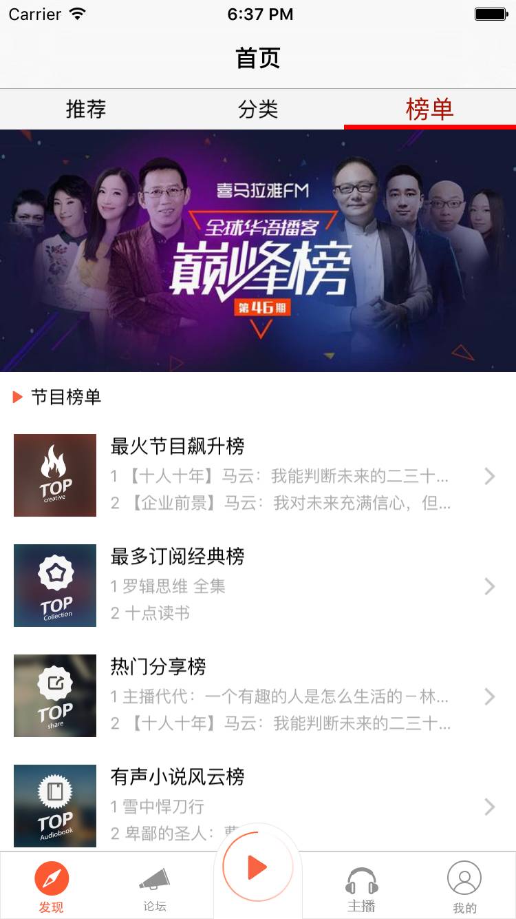 发现 – 首界面 – 榜单