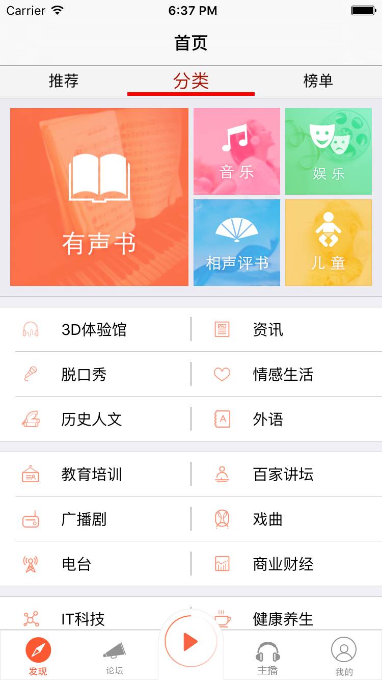 发现 – 首界面 – 分类