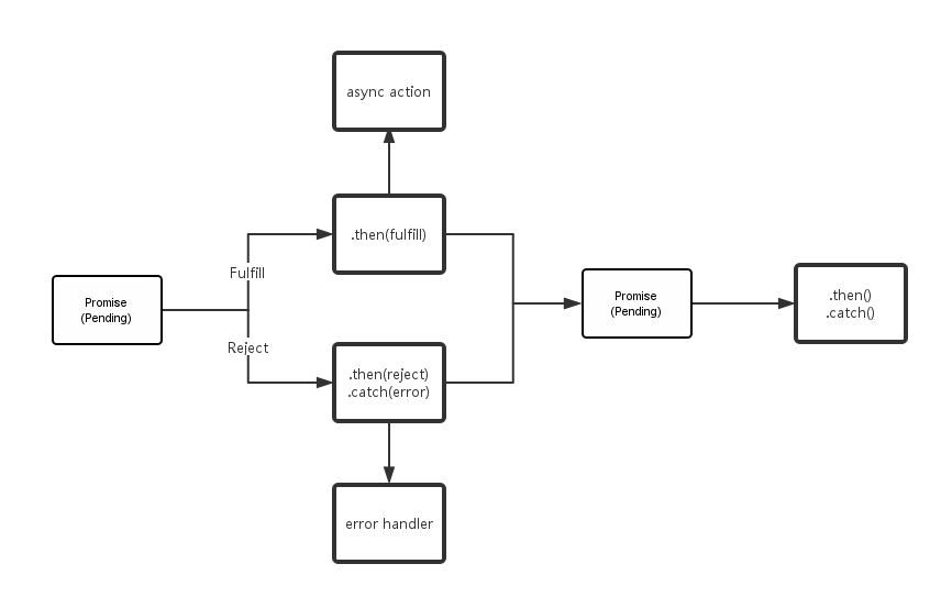 总结起来就是上图,pending状态的promise对象既可转换为带着一个成功值的 fulfilled 状态,也可变为带着一个 error 信息的 rejected 状态。当状态发生转换时, promise.then 绑定的方法就会被调用。(当绑定方法时,如果 promise 对象已经处于 fulfilled 或 rejected 状态,那么相应的方法将会被立刻调用, 所以在异步操作的完成情况和它的绑定方法之间不存在竞争关系。)从Pending转换为fulfilled或Rejected之后, 这个promise对象的状态就不会再发生任何变化。因此 then是只被调用一次的函数,从而也能说明,then生成的是一个新的promise,而不是原来的那个。