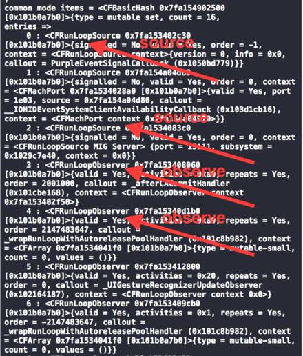 如果没有为RunLoop添加item,那么它就会立即退出,这里的item呢? 其实系统已经给我们默认添加了4个source了。