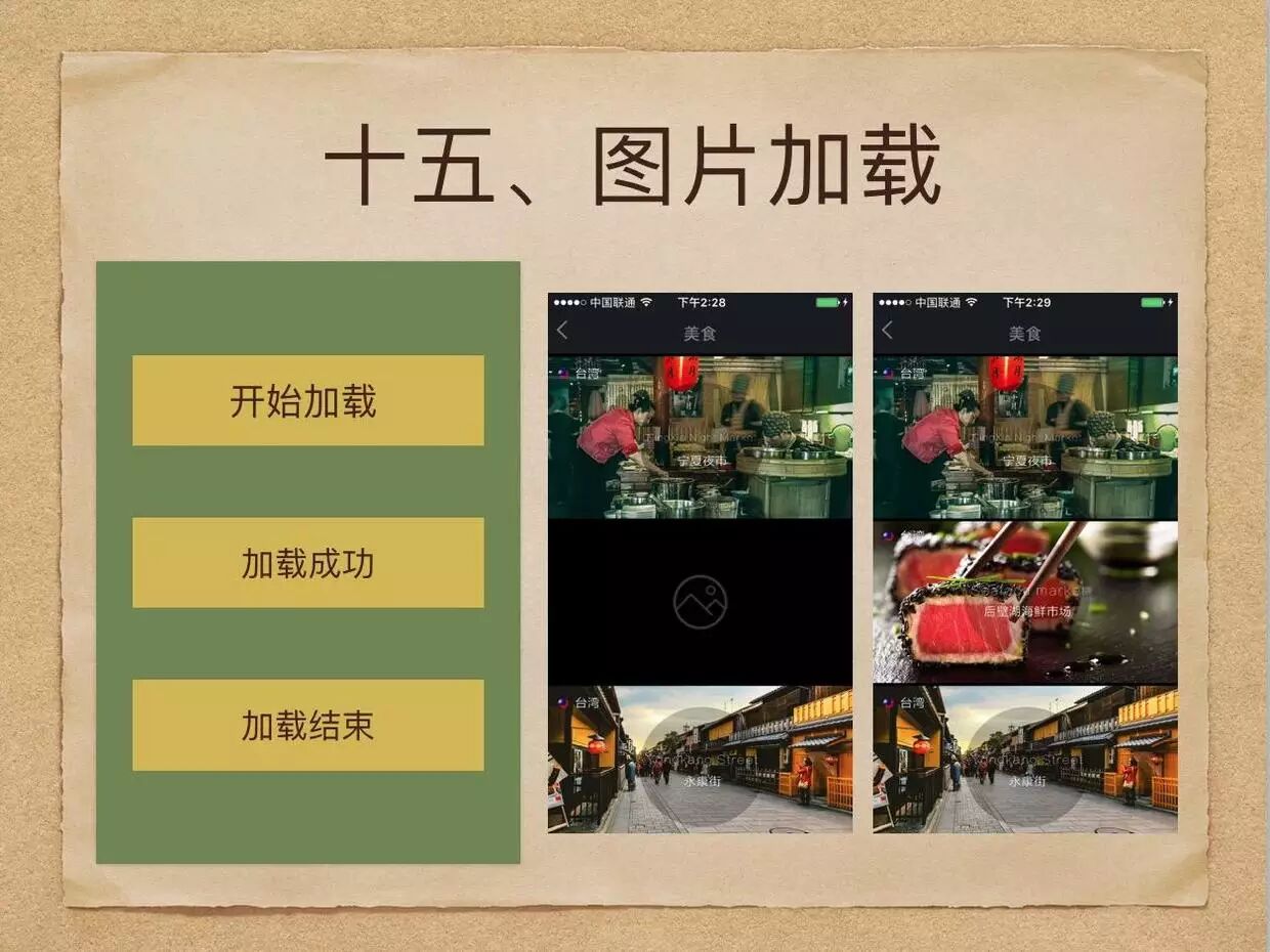 刚才大家看旅行喵的介绍,可能也能猜到,旅行喵上面有大量的图片。为了节省用户流量和提高图片加载速度,我们做了图片缓存的功能。在iOS和Android上分别通过原生UI组件的方式实现。