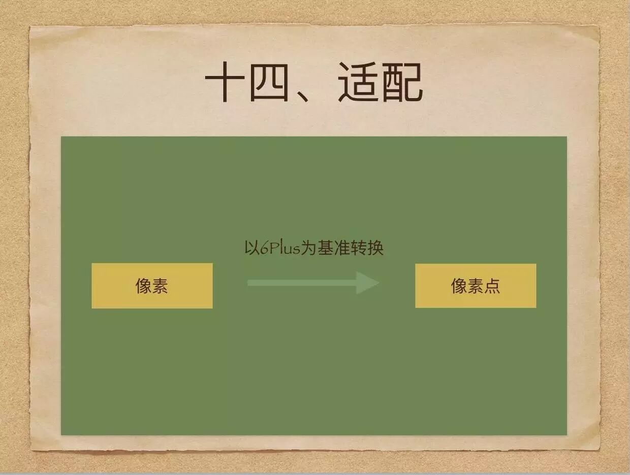 我们和设计师协商之后,决定以6 Plus为基准,通过一套机制把设计文档上标注的像素转换不同设备类型的像素点进行适配。
