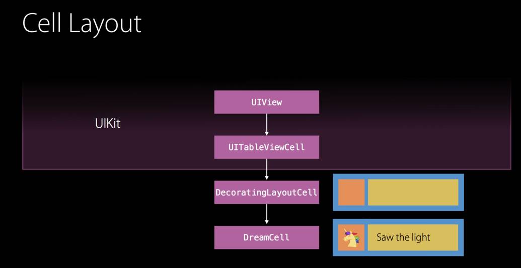 我们需要让视图布局的功能独立与具体的 view 类型,无论是 UITableViewCell、UIView、还是 SKNode(Sprite Kit 中的类型)