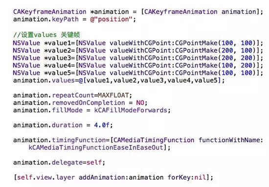 NOTICE: CAKeyframeAnimation则可以支持任意多个关键帧,关键帧有两种方式来指定:
