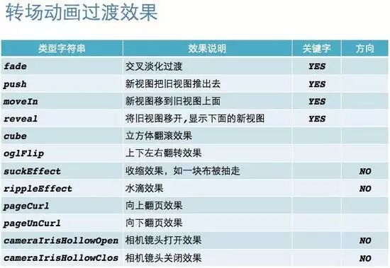 2.UINavigationController就是通过CATransition实现了将控制器的视图推入屏幕的动画效果