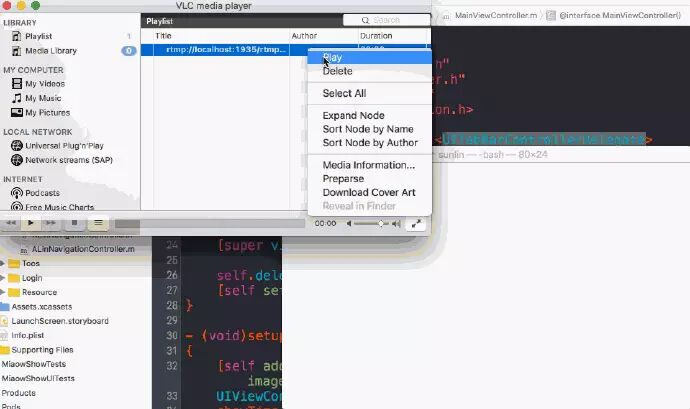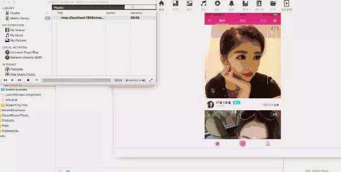 下载好我写的喵播后, 在Xcode左下方直接搜索ShowTimeViewController, 进入ShowTimeViewController.m. 搜索- (IBAction)living:(UIButton *)sender, 将里面的stream.url替换成你自己的rtmp地址即可.