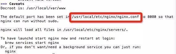 通过vim或者点击Finder->前往->前往文件夹->输入/usr/local/etc/nginx/nginx.conf->用记事本工具(推荐Sublime Text)打开nginx.conf.