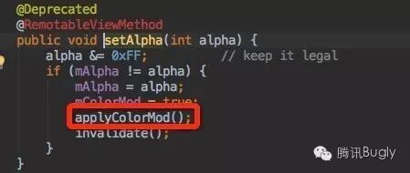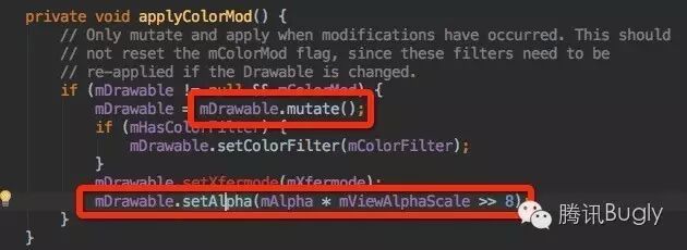 (2)通过applyColorMod方法可知,ImageView.setAlpha(int alpha)方法,是通过Drawable.setAlpha(int alpha)实现的