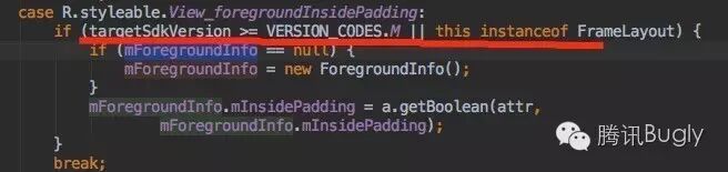 根据上述源码可知,如果ImageView要使用setForeground()方法,必须保证targetSdkVersion>=23。
