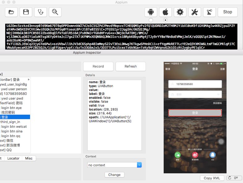 Appium中的Inspector工具,可以帮助我们快速定位元素,通常也是通过name和XPath等方式。