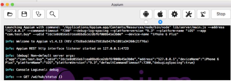 (2) 单击Launch按钮,启动 Appium,无错误日志。