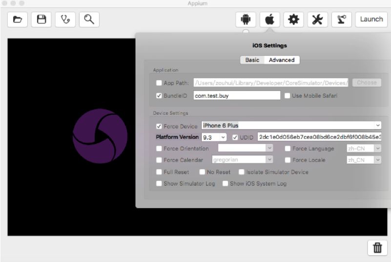 Appium中,Launch用来启动停止操作,启动成功时如图3.8所示。