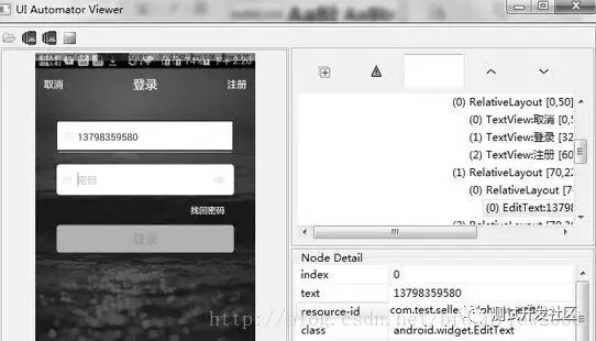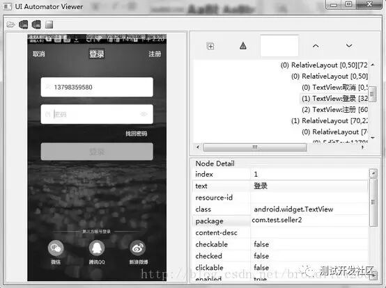 上图中,Node Detail 下面的resource-id com.test.seller:id/phone_edit1 对应Excel 和代码中的定位方法By.id,控件元素数据text 13798359580 对应Excel 和代码中的操作方法sendkeys(),控件元素赋值数据为13798359580。
