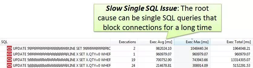 示例4:由于耗时的后端SQL报表执行,造成连接池无法有效地调整大小