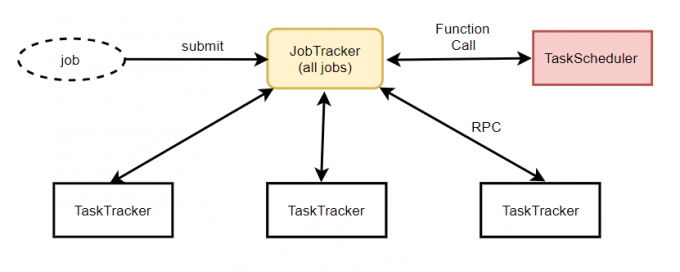 JobTracker:用户程序提交了一个Job,任务(job)会发给JobTracker,JobTracker是Map-Reduce框架中心,它负责把任务分解成map和reduce的作业(task);需要与集群中的机器定时心跳(heartbeat)通信;需要管理那些程序应该跑在那些机器上;需要管理所有job失败、重启操作。