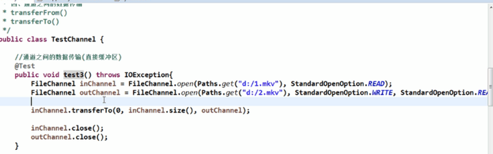 在《Java编程思想》读到“即使我们不显式的使用NIO编程,也能从中受益”的时候,我是挺在意的,所以:我们测试一下使用NIO复制文件和传统IO复制文件的性能: