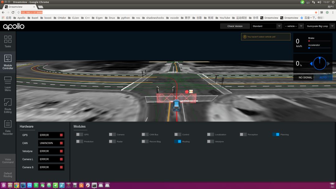 假设车内工控机局域网IP地址为:192.168.3.137,打开Chrome或Firefox浏览器,输入如下网址:http://192.168.3.137:8888/,按照2.2.2节中的方法,启动待调试的planning及其依赖的routing模块。