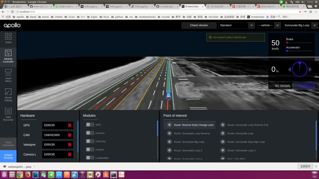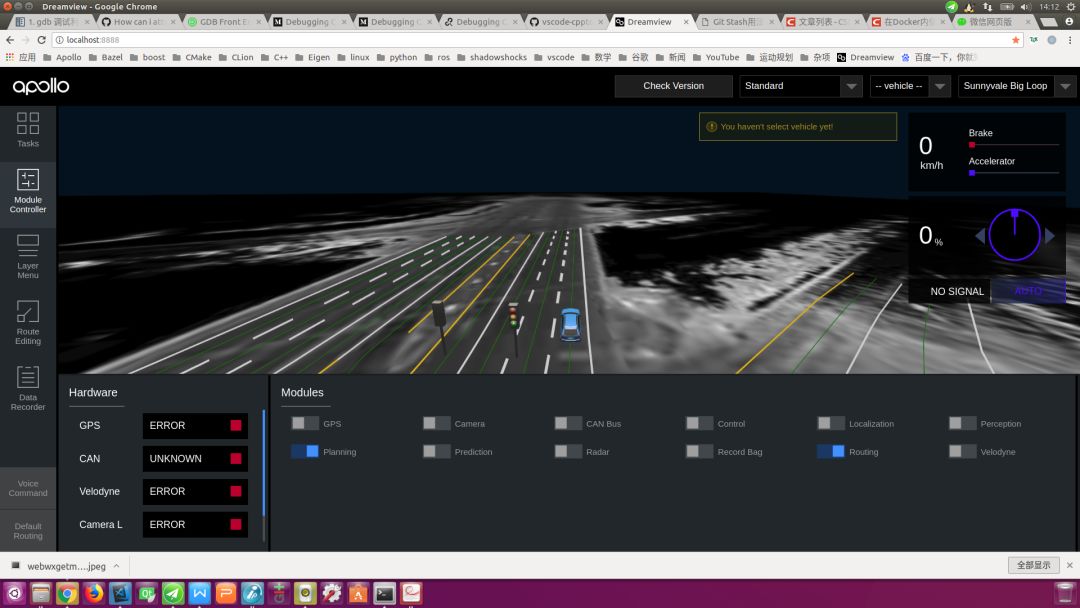 启动待调试模块,既可使用命令行操作,也可借助Dreamview界面完成。我肯定喜欢使用Dreamview界面操作了,下面以调试“planning”模块为例进行说明。
