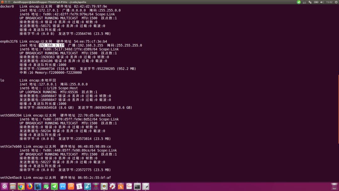 3.1查看车内工控机IP地址在车内工控机上,通过如下命令查看本机IP:
